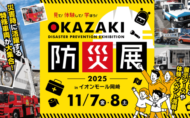 [引用:イオンモール岡崎公式ホームページ」] イベント情報です。 イオンモール岡崎にて「岡崎防災展2025」が開催されます。 主な企画内容 2025年11月7日(金)と8日(土)の2日間にわたり、イオ ...