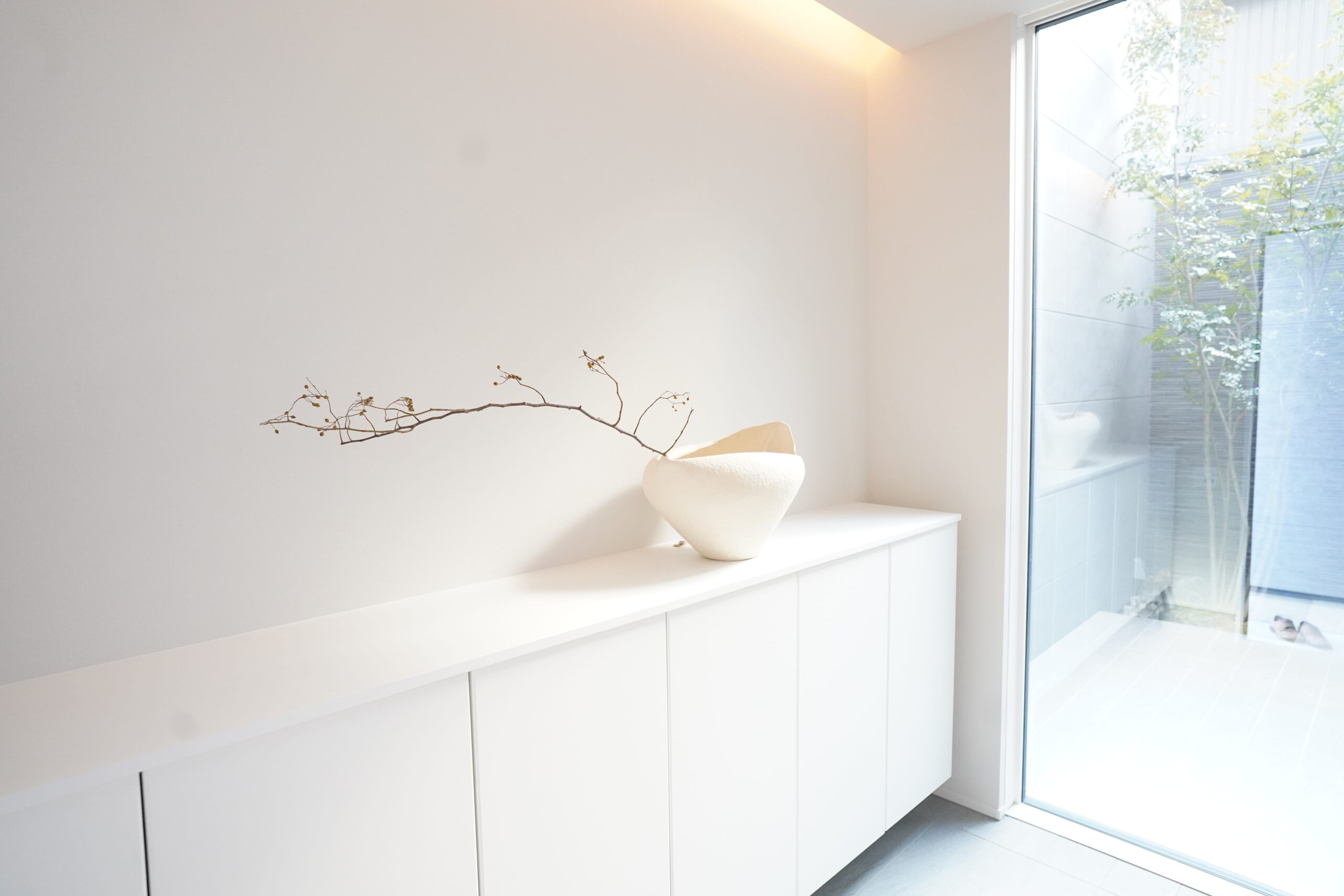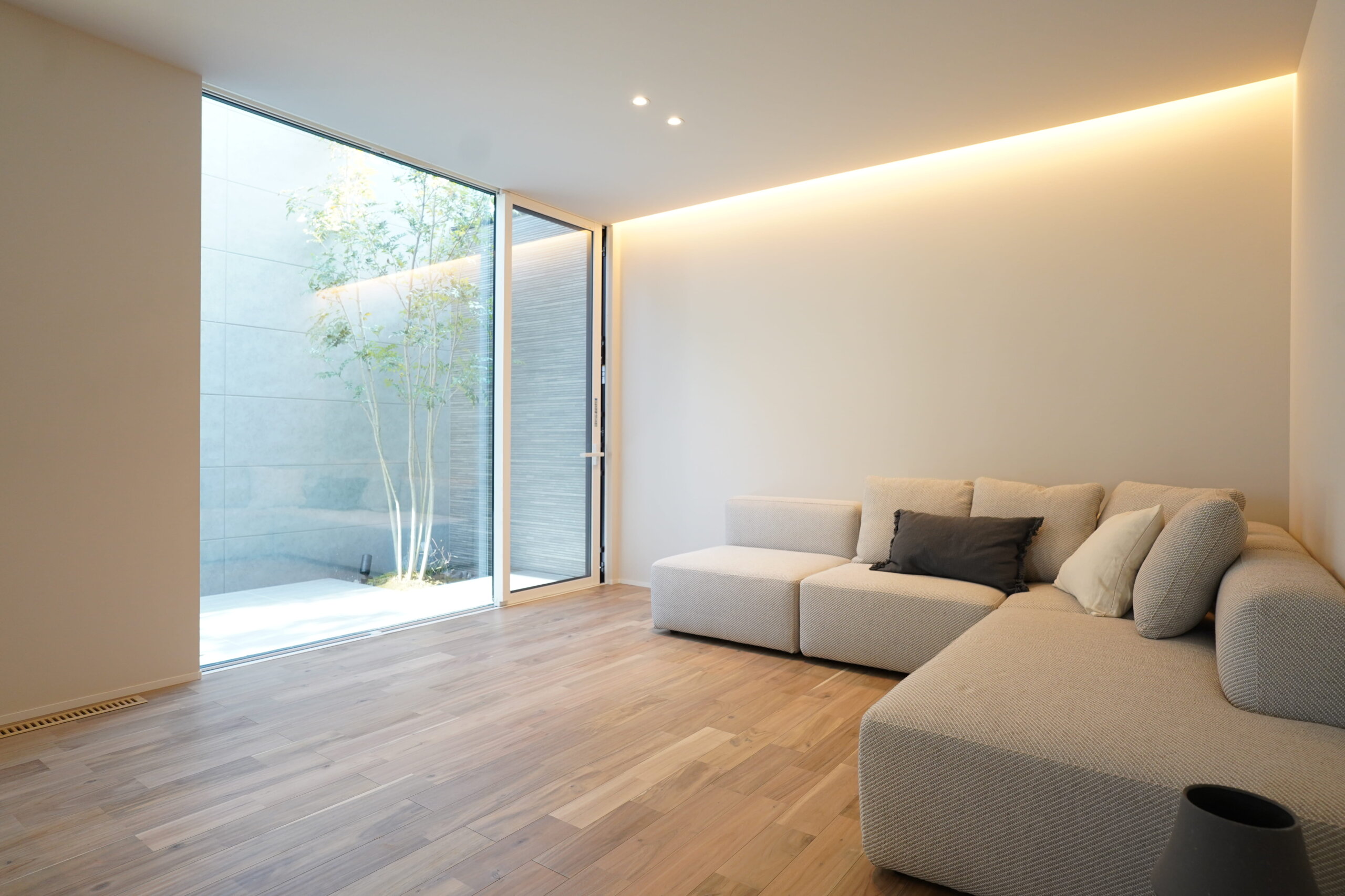 プライバシーが確保された中庭からの光を白い壁が受け止め、室内をやわらかい光で満たしてくれるんです。