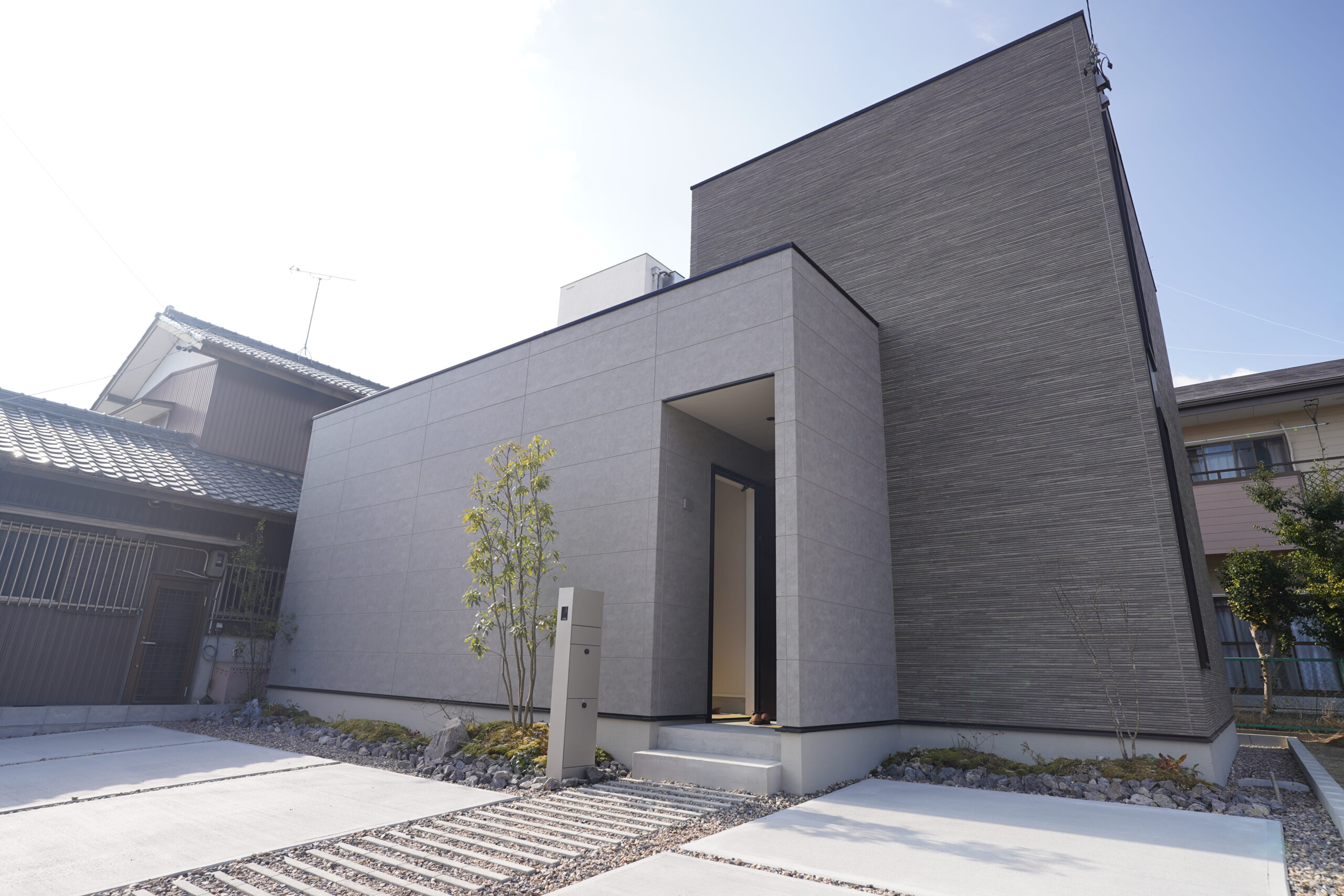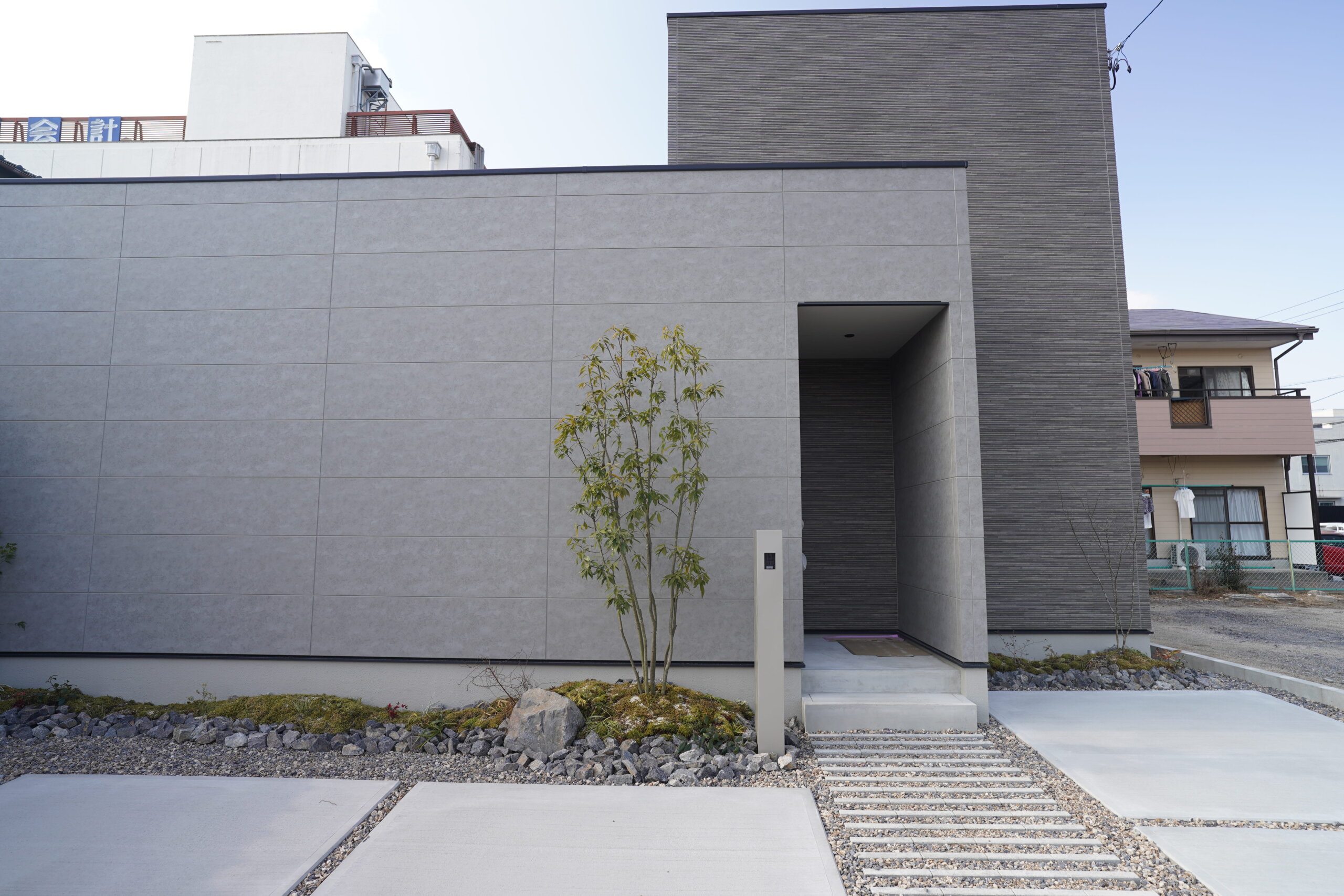 まず目に飛び込んでくるのは、住宅街の中で一際目を引く、無駄を削ぎ落とした外観です。