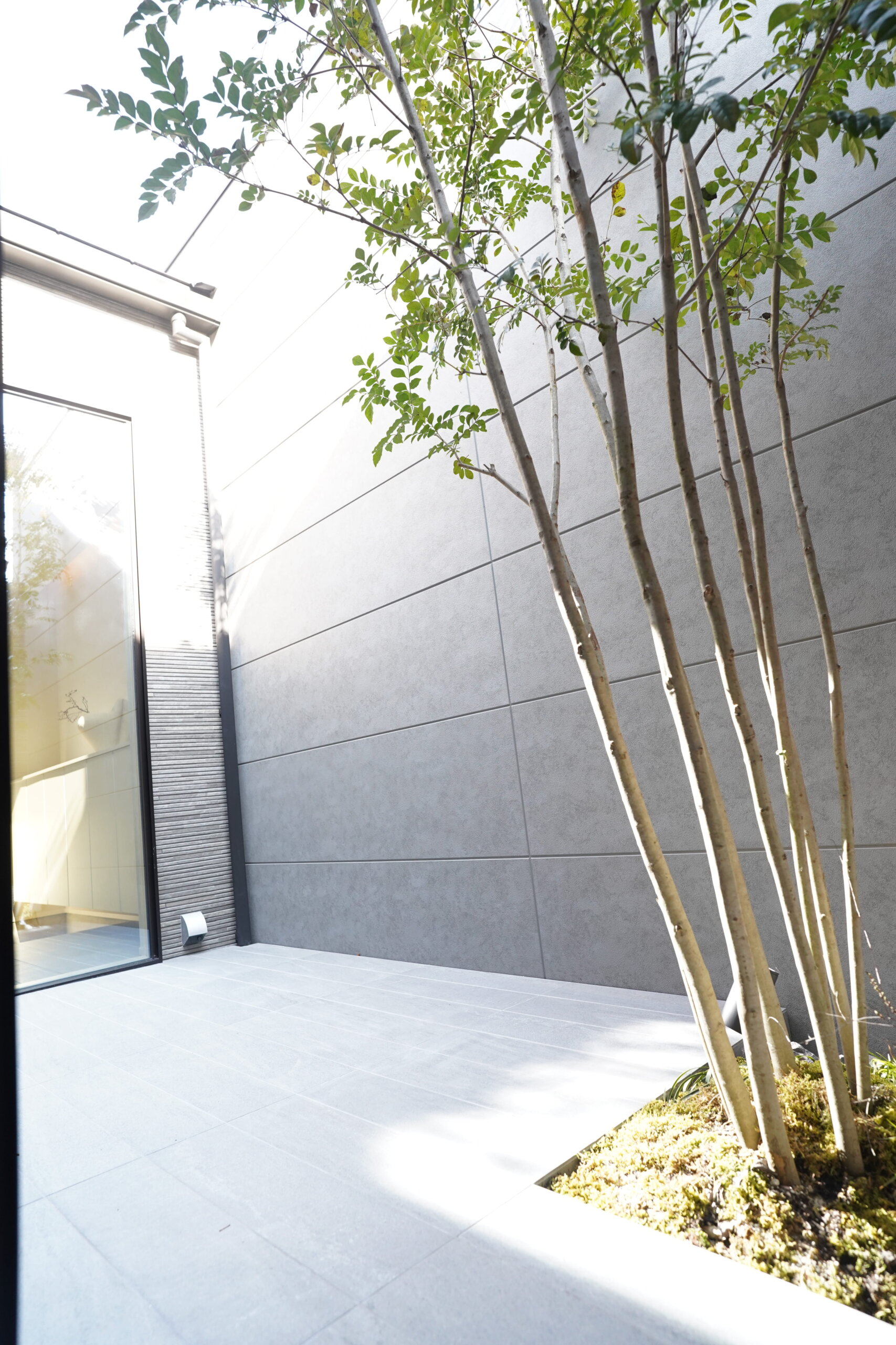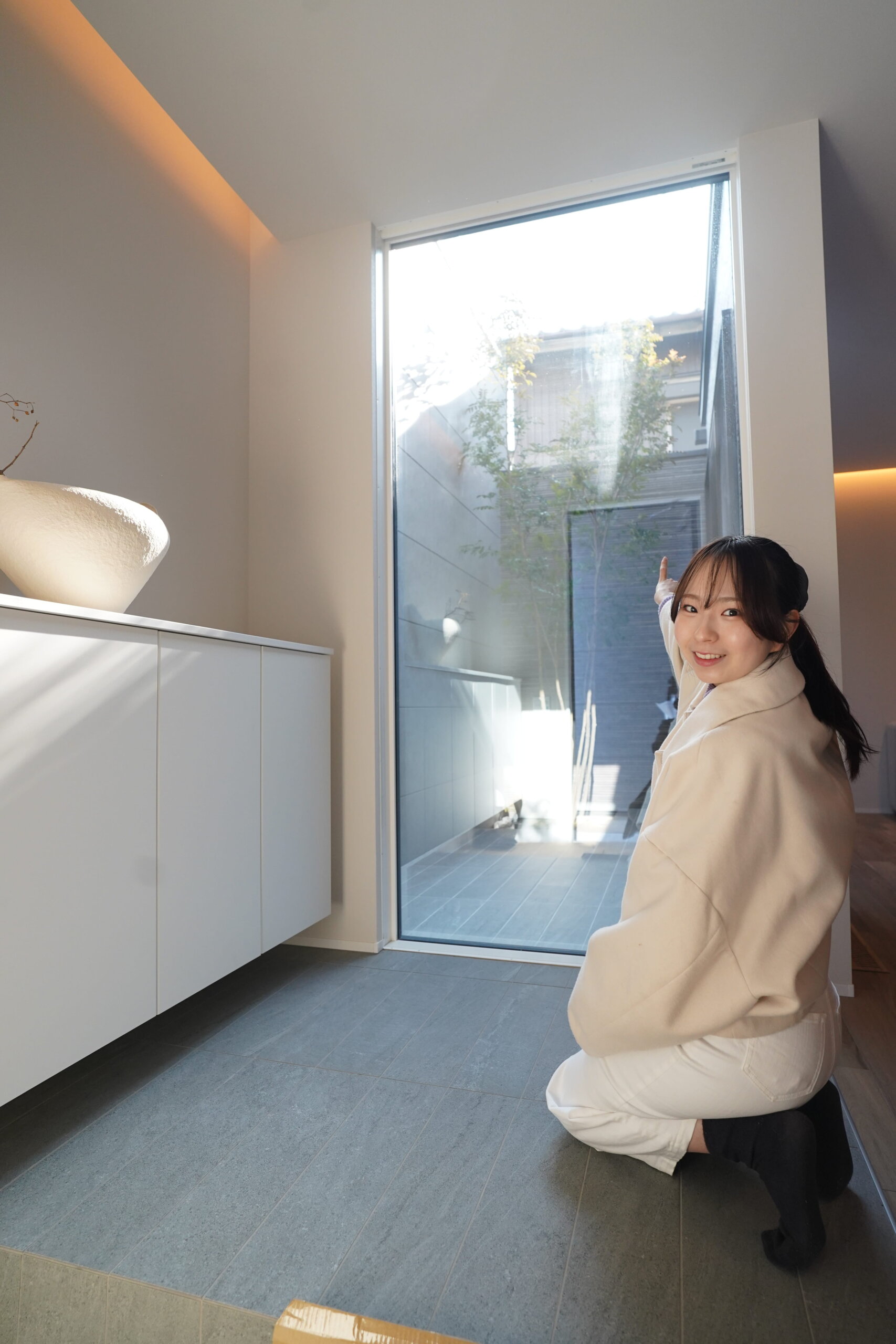 玄関から中庭まで続くタイルの使い方が秀逸です。