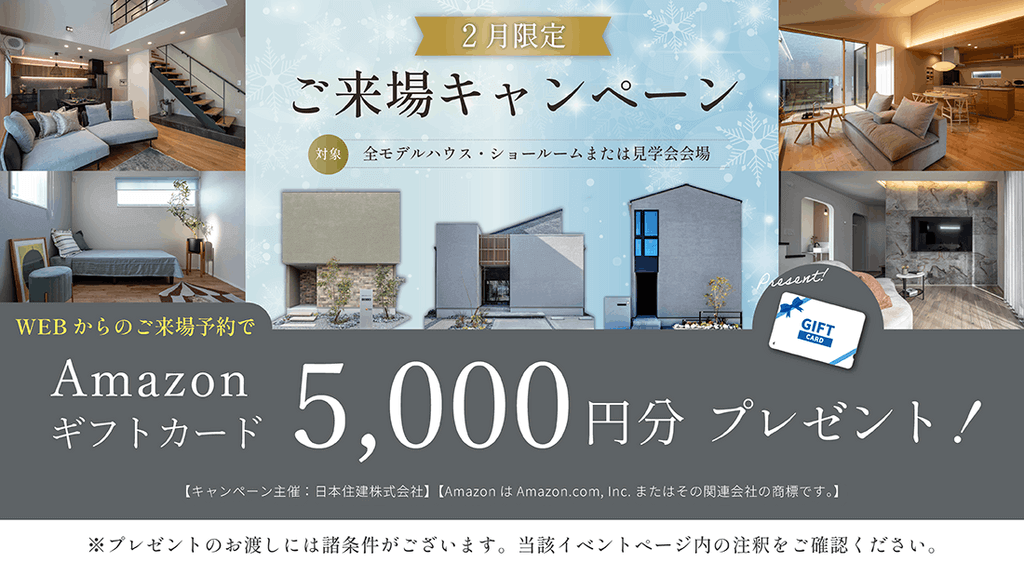 今だけ限定でWEBからの来場予約で「Amazonギフトカード 5,000円分」をプレゼントしています!(※初回来場・アンケート回答などの諸条件は公式サイトをご確認ください。)