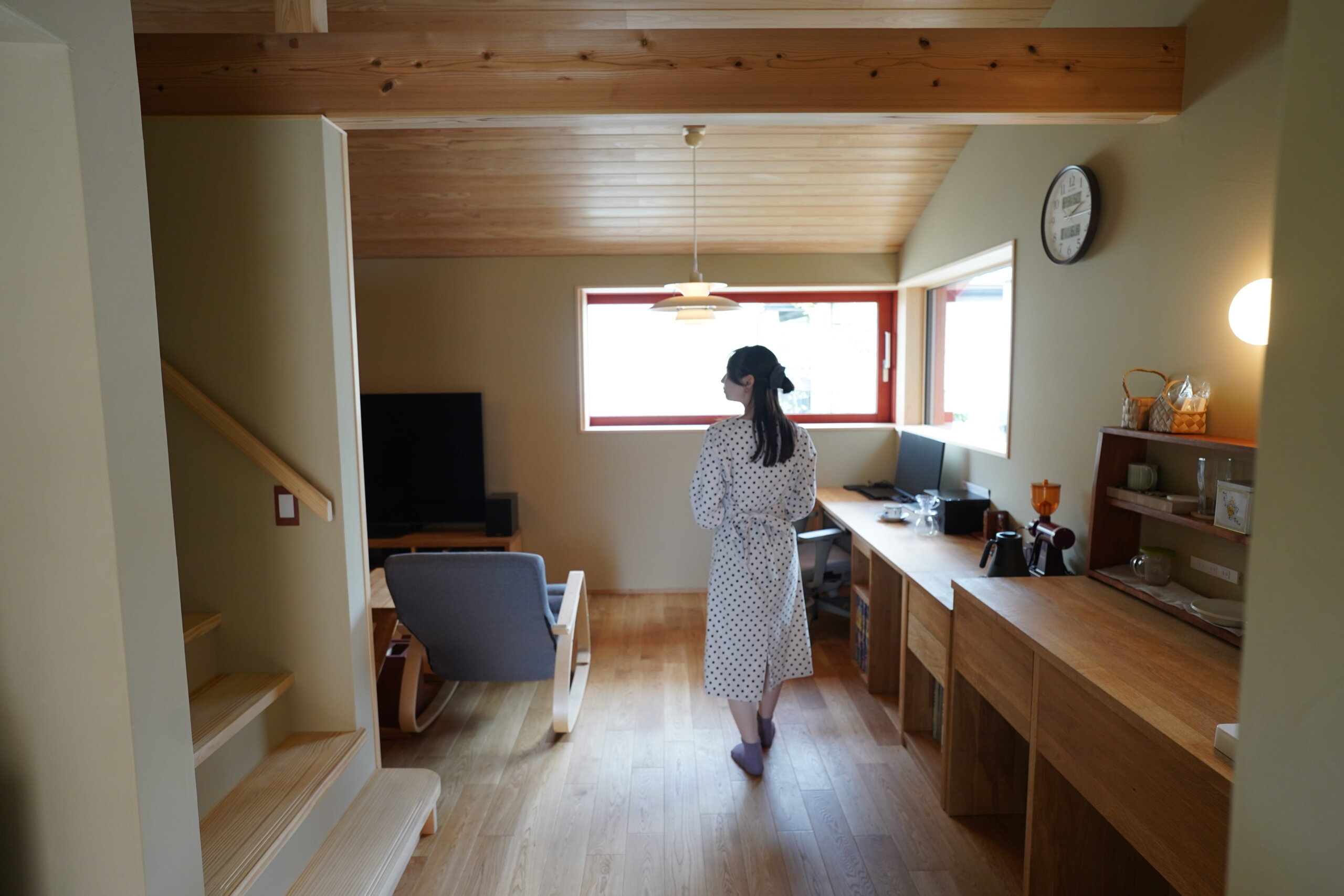 階段上のスペースには、お孫さんが泊まったり、遊べるような小屋裏スペースも設計されていました。1階にいるご家族とも会話できたりとても楽しい空間です。