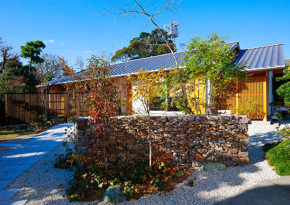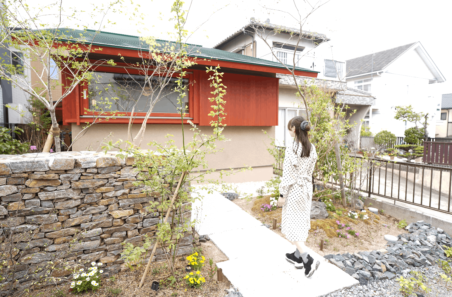 「家」と「庭」が合わさって「家庭」になるという考えのもと、窓から見える景色や、外構の石積み、樹木の配置までを社長自らがトータルでご提案。