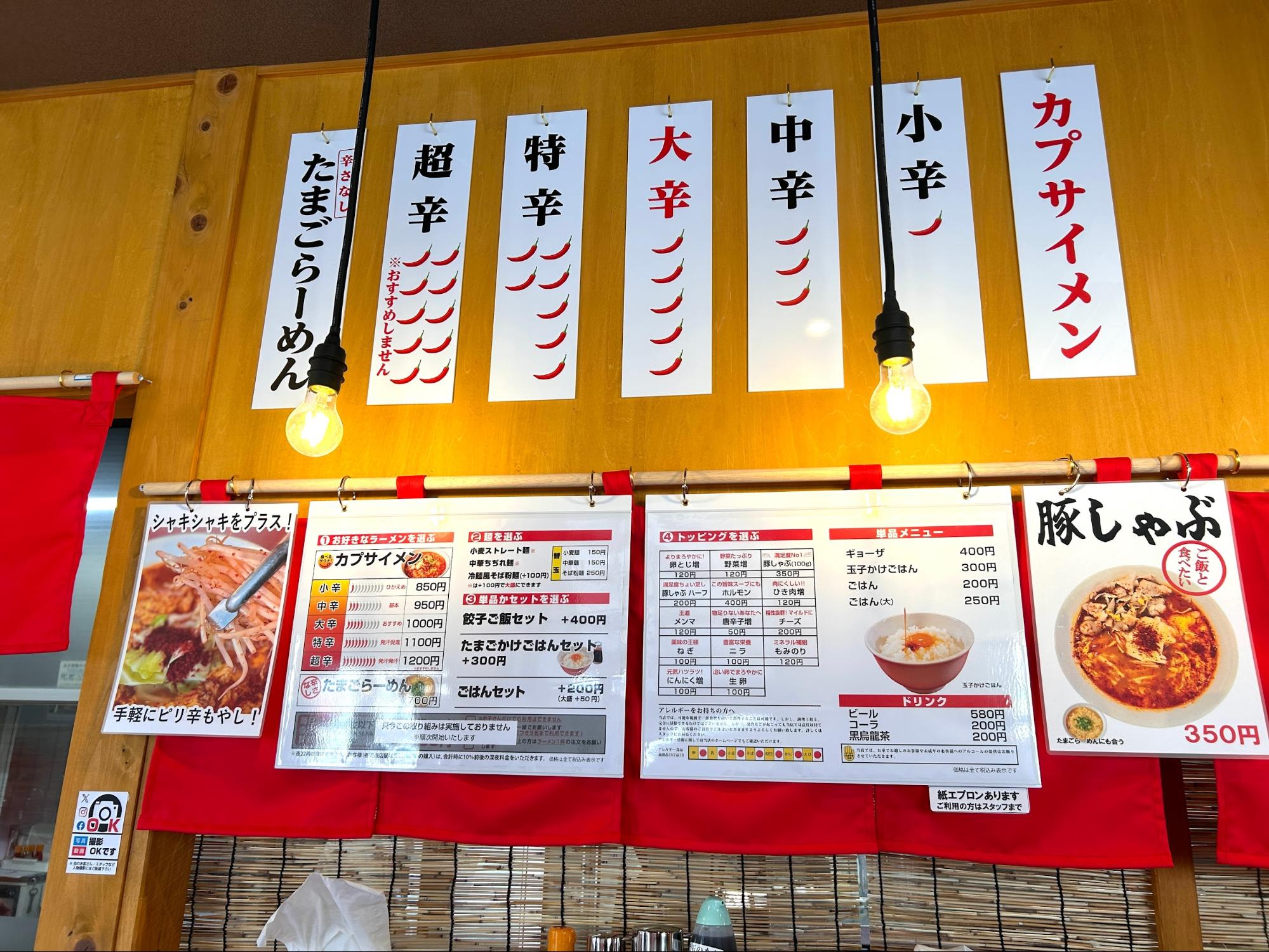 「カプサイメン 岡崎店」は、辛さや麺、トッピングを自分好みにカスタマイズできるのが最大の魅力。