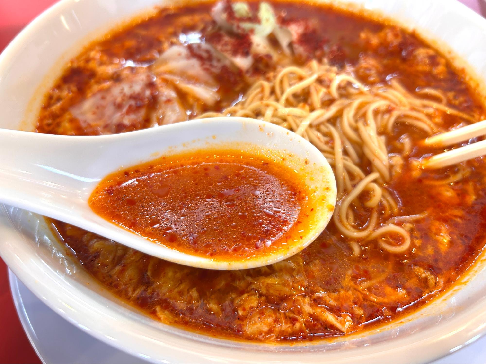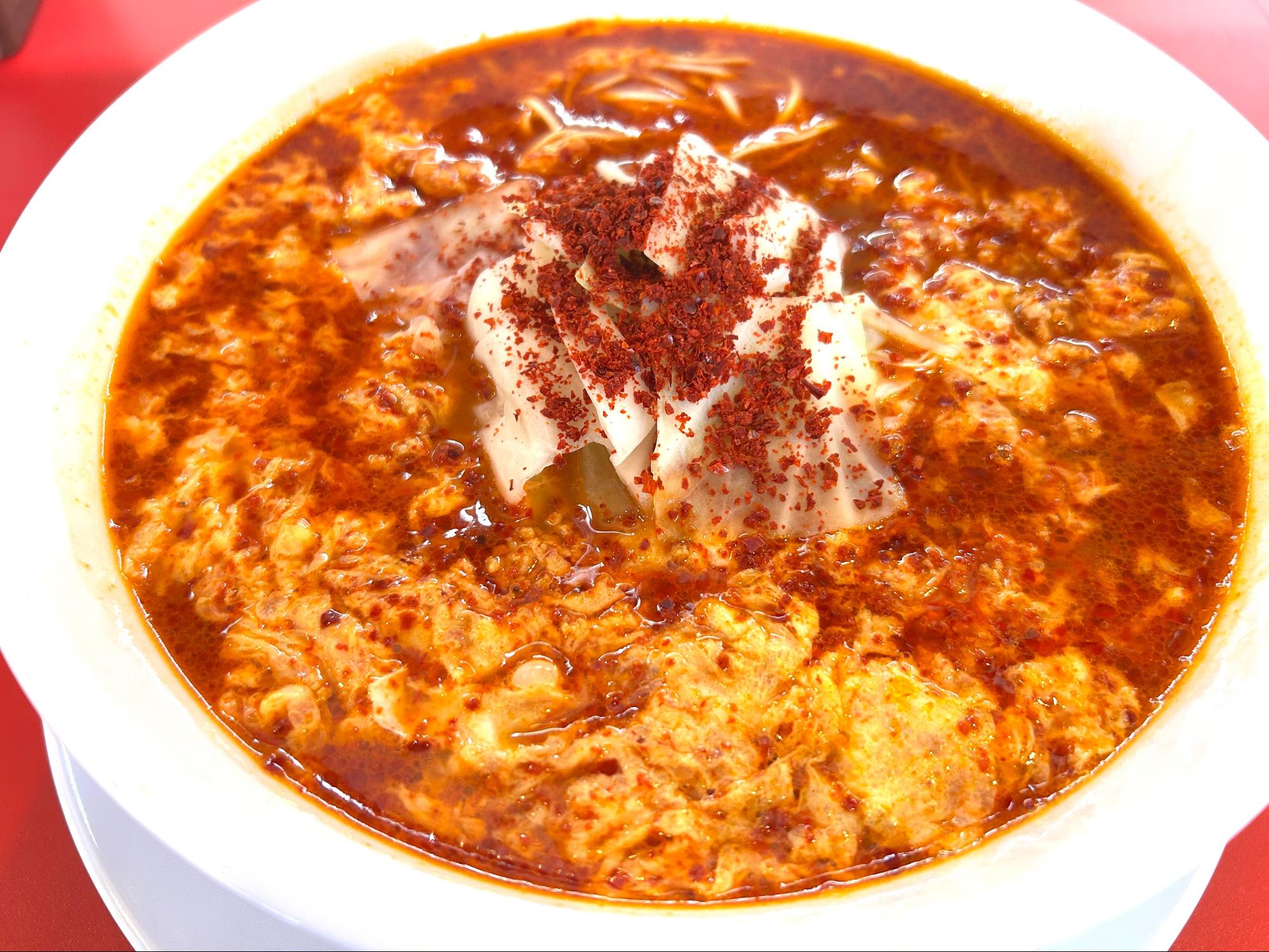 見た目は真っ赤で激辛を想像しますが、口に含むと卵でとじられているので、そこまで辛さを感じません!