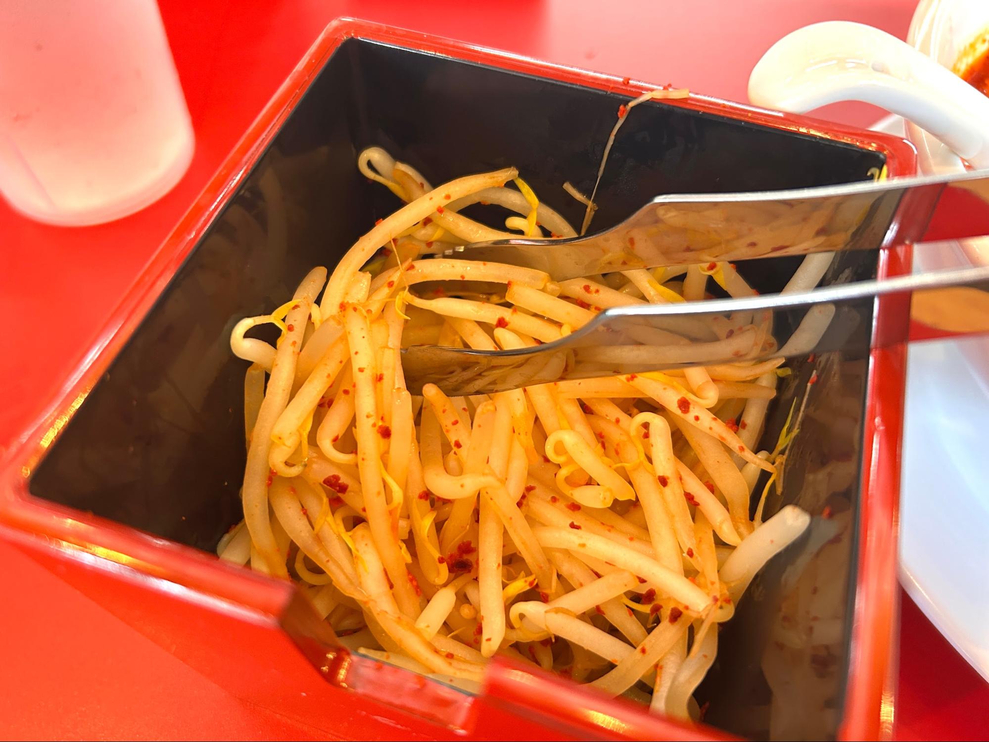 無料で食べられる「ピリ辛もやし」を追加すると、また違った味わいになって最高ですよ♪