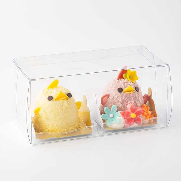 名古屋コーチンの卵を使った濃厚なプリンをいちご味のババロアで包み、「花咲かタイムズ」をイメージして3色の花のチョコレートを添えました。