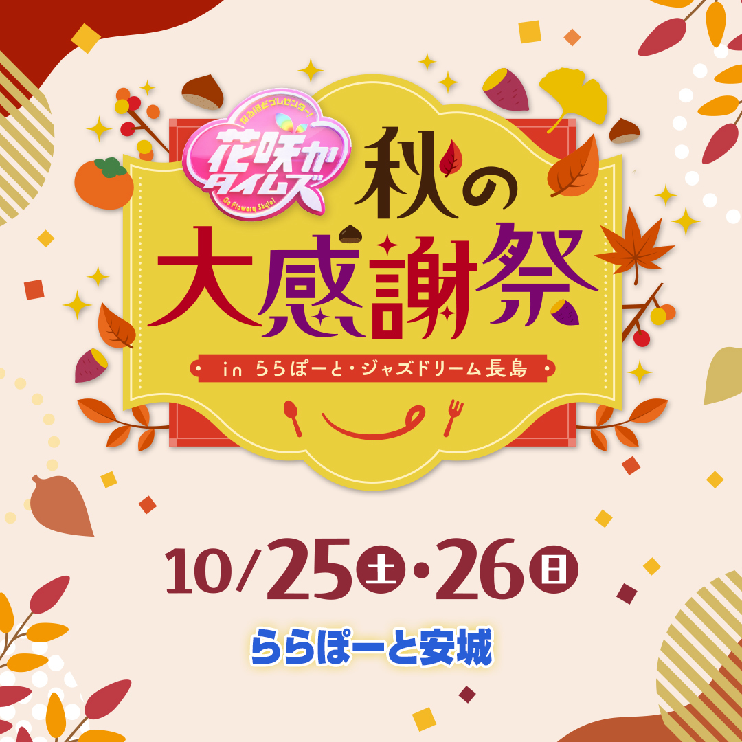 2025年10月25日(土)、26日(日)にららぽーと安城にて「花咲かタイムズ秋の大感謝祭inららぽーと・ジャズドリーム長島」が開催されます。