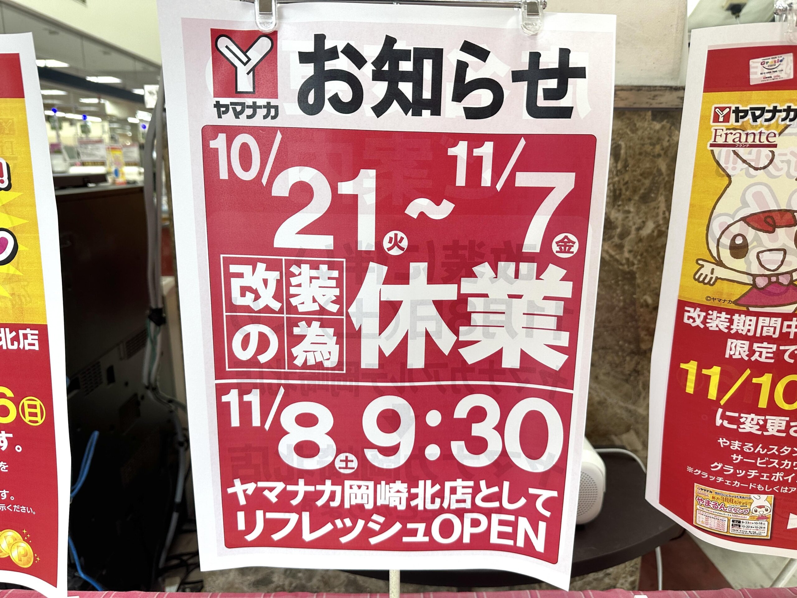 リフレッシュオープンは11/8(土)9:30からとなりますので、2週間とちょいの期間お休みです。