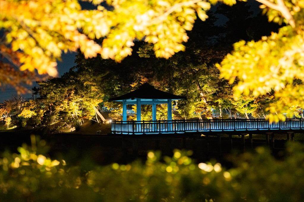 光に照らされたモミジが池の水面に映りこみ、「光と紅葉の幻想的な調和」として大手旅行サイトでも紹介され、かつては全国紅葉ランキング第7位に選ばれたこともあるそうです。