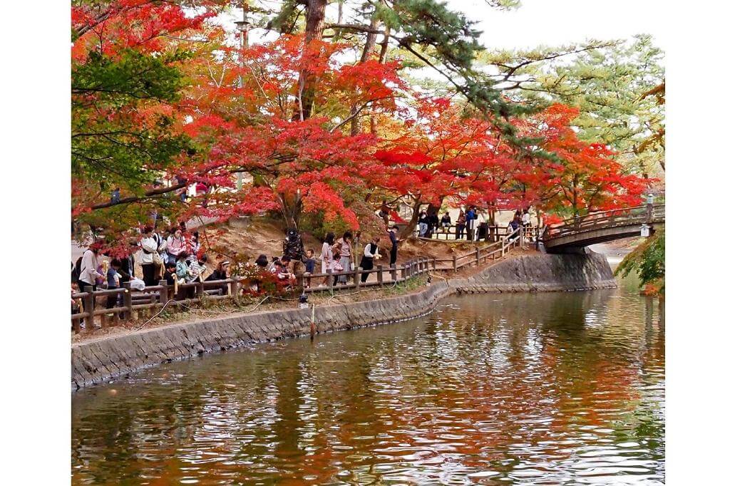 園内には約1,500本ものモミジが植えられ、岡崎市内最大級の紅葉名所として知られています。