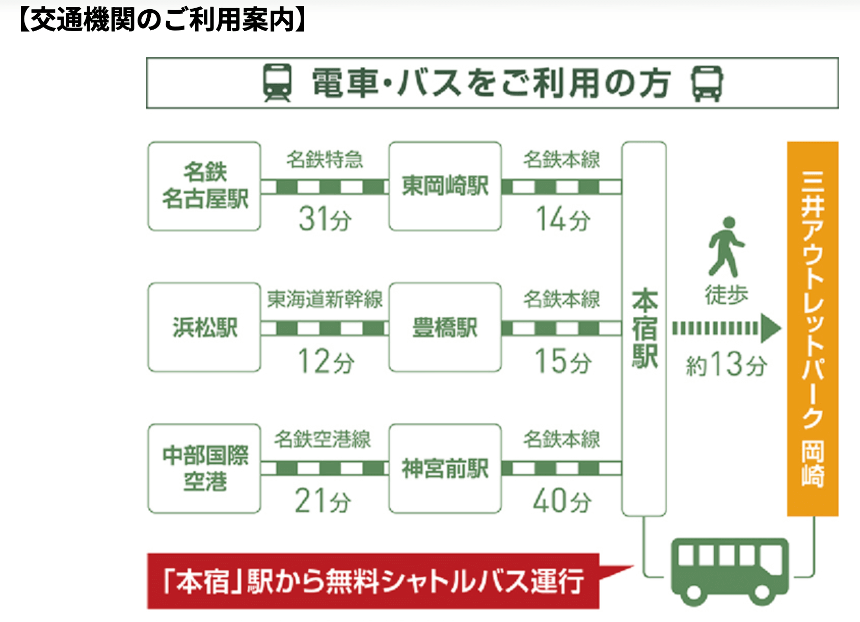 バスでの待ち時間なども考慮しながら、自分に合った方法で三井アウトレットパーク岡崎まで行ってみてくださいね。