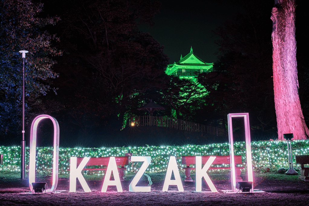 幻想的な光に包まれた岡崎城公園は、日中とはまったく違う雰囲気となります。