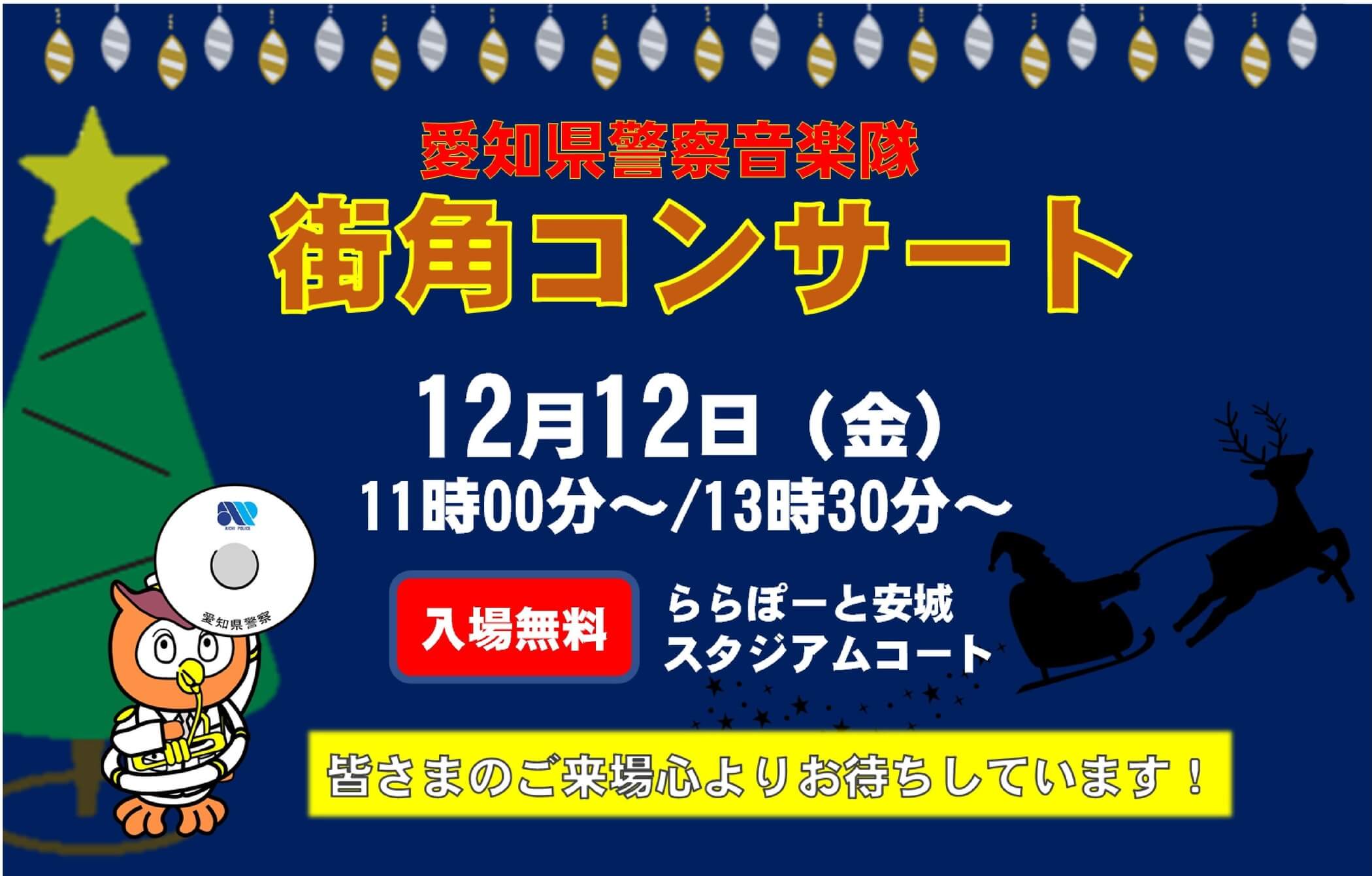 2025年12月12日(金)に、愛知県警察音楽隊「街角コンサート」inららぽーと安城が開催されます。