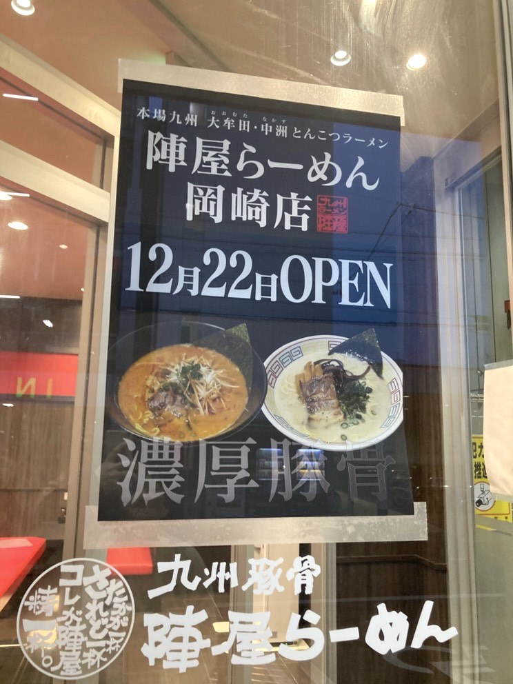 2025年12月22日(月)岡崎市羽根西3丁目に九州豚骨「陣屋らーめん 岡崎店」が開店予定です。
