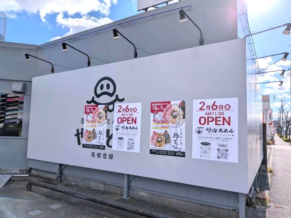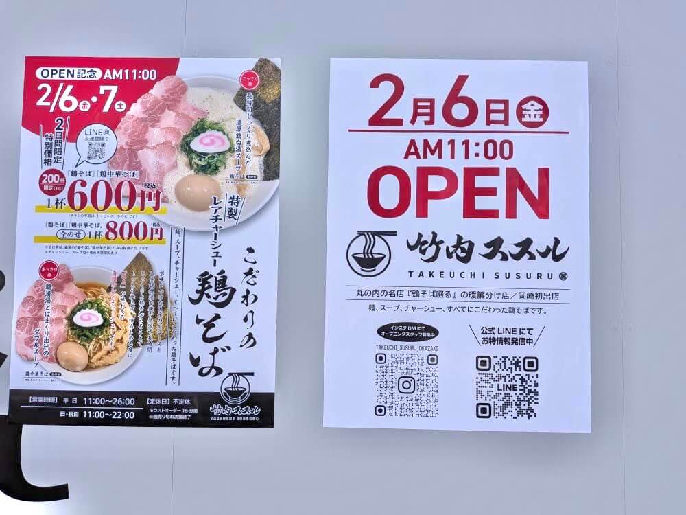 2026年2月6日(金)国道248号線沿い、岡崎市井田南町に「竹内ススル」というラーメン屋さんが開店予定です。