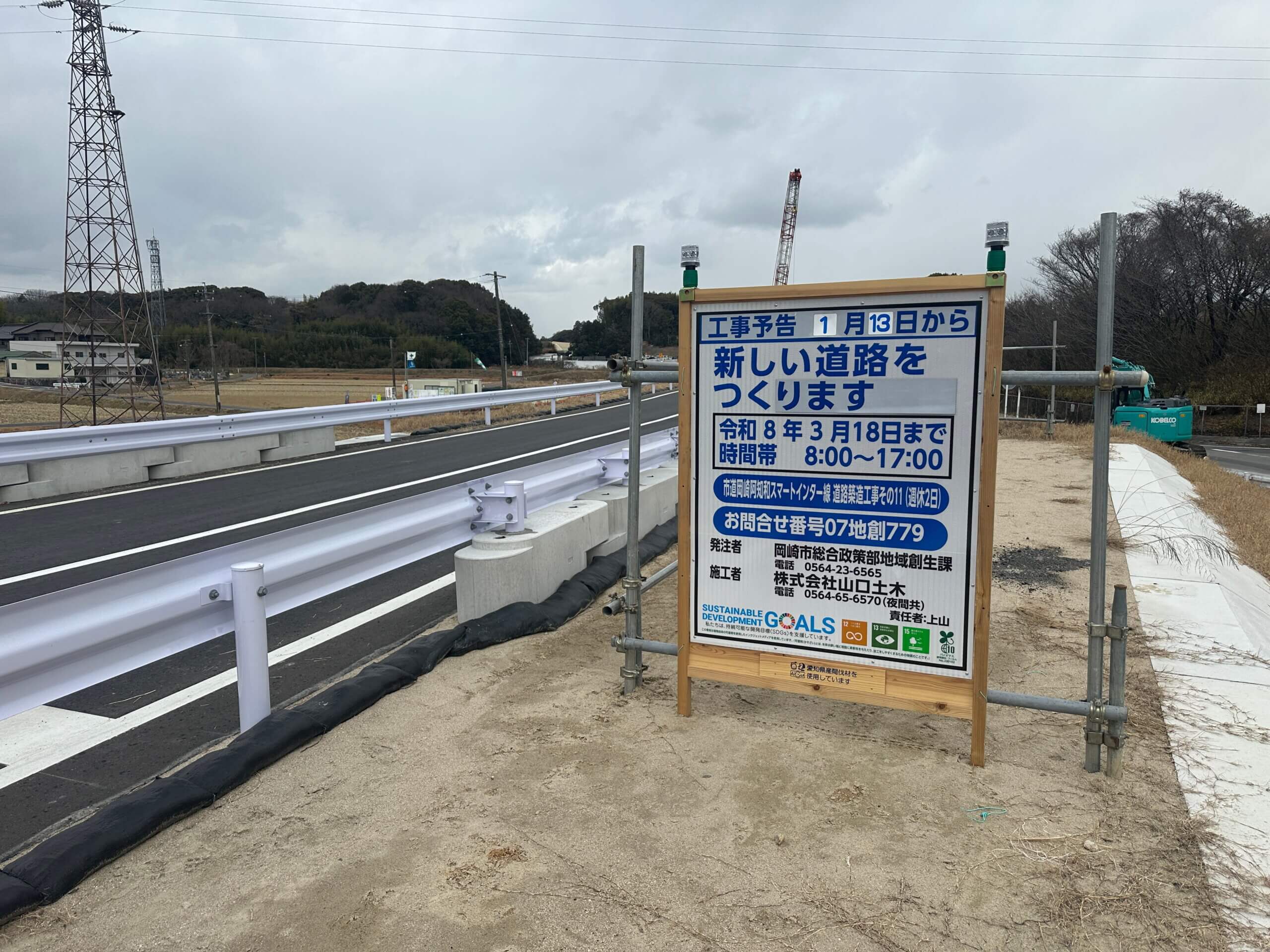 また阿知和スマートインター線の新しい道路も1月13日から工事が始まっております。