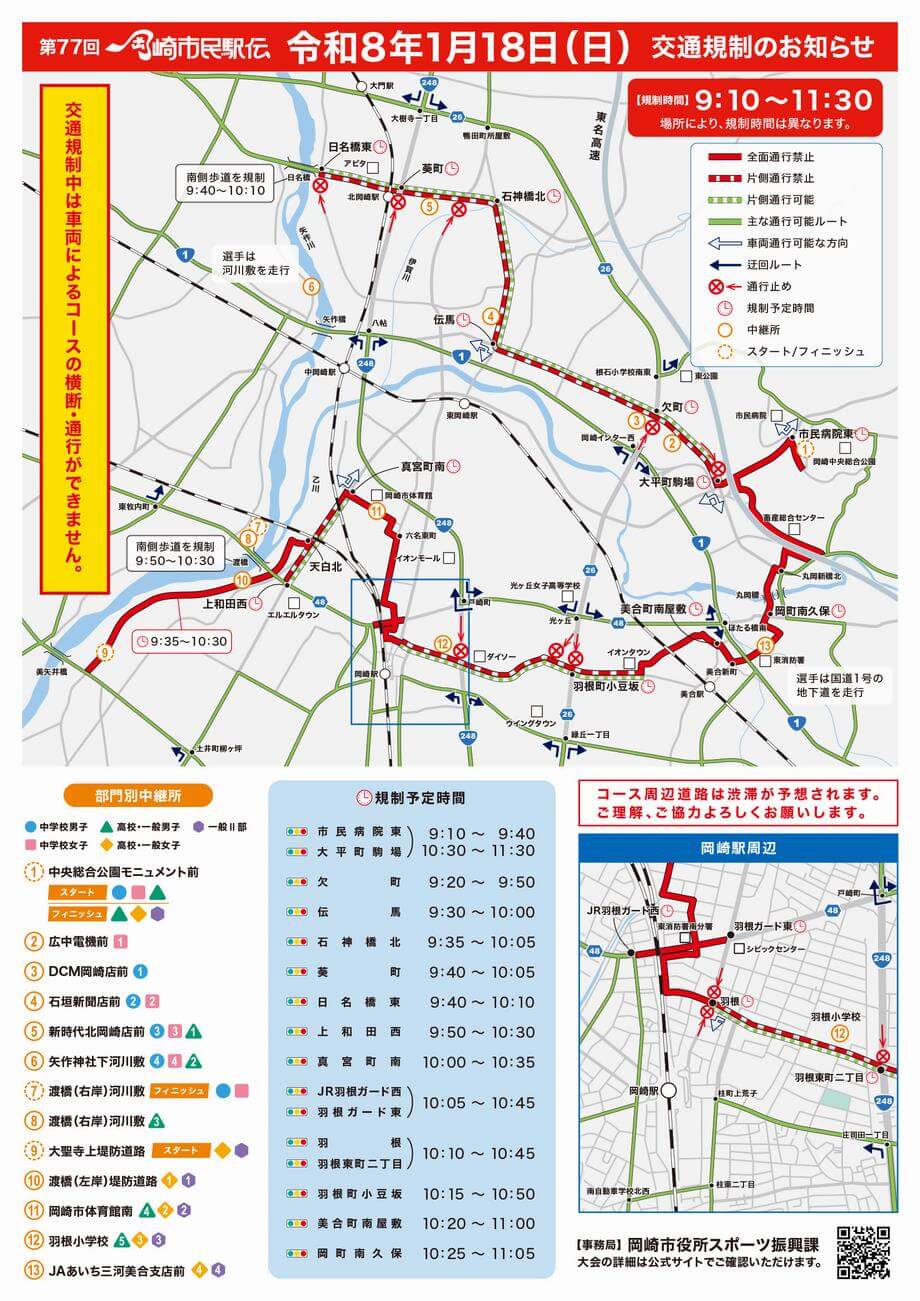 2026年1月18日(日)に、「交通安全 第77回岡崎市民駅伝競走大会」が開催されます。