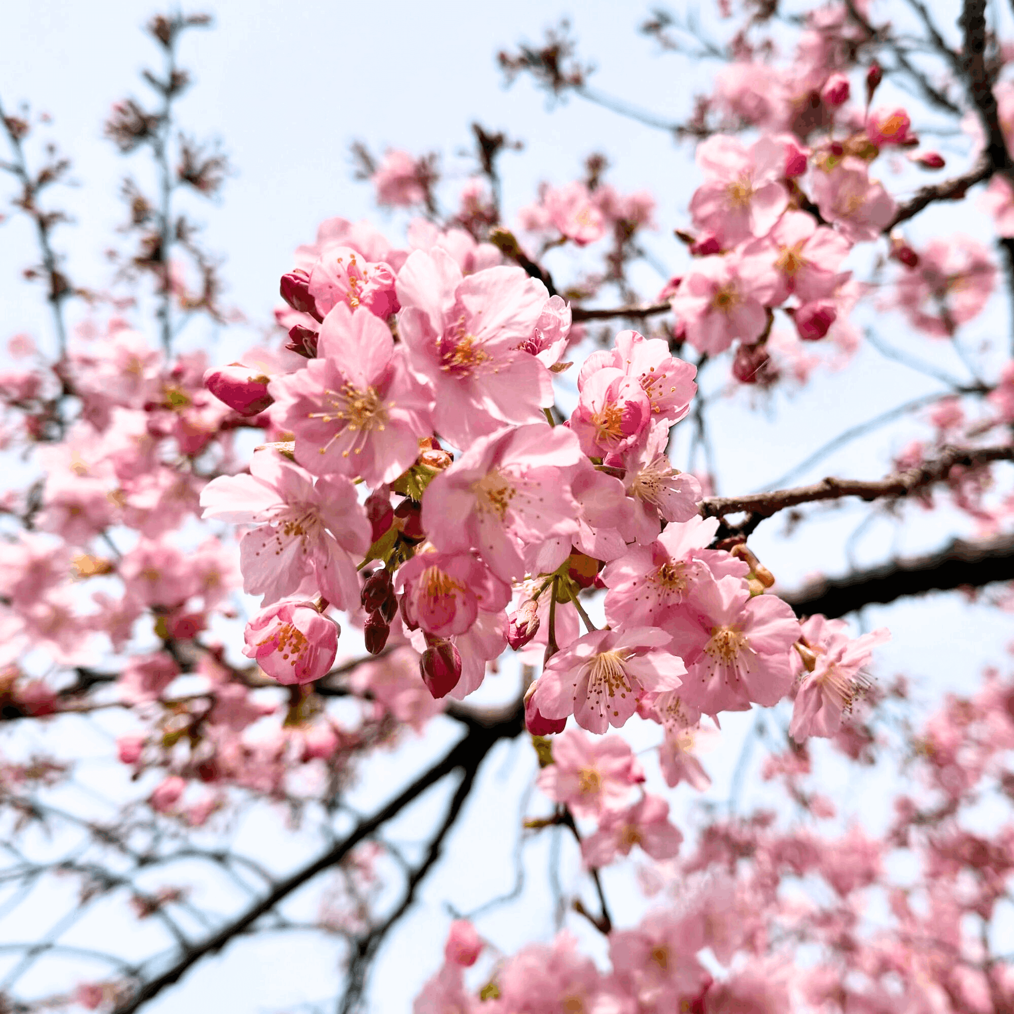 現在、葵桜が見頃を迎えています。