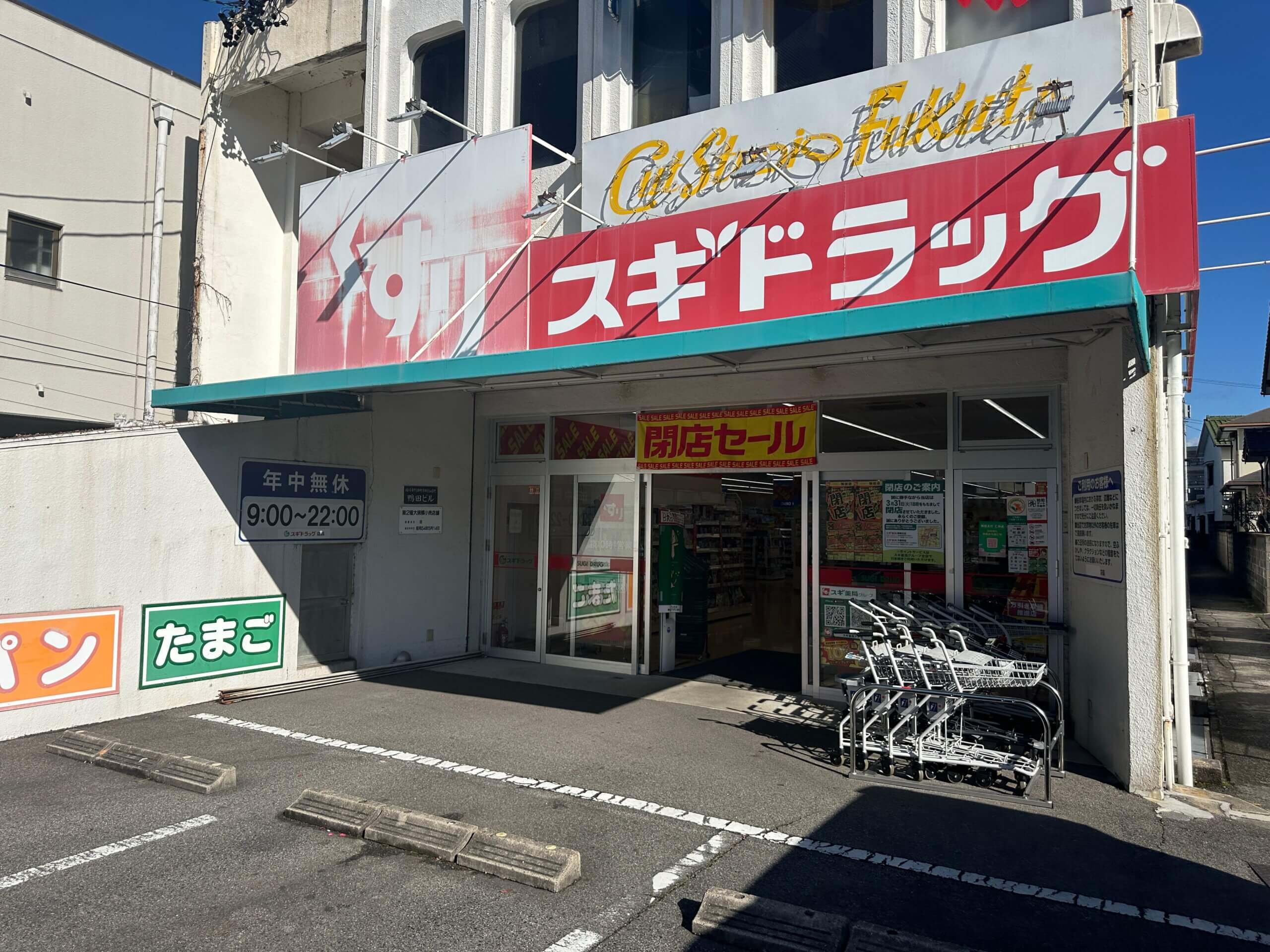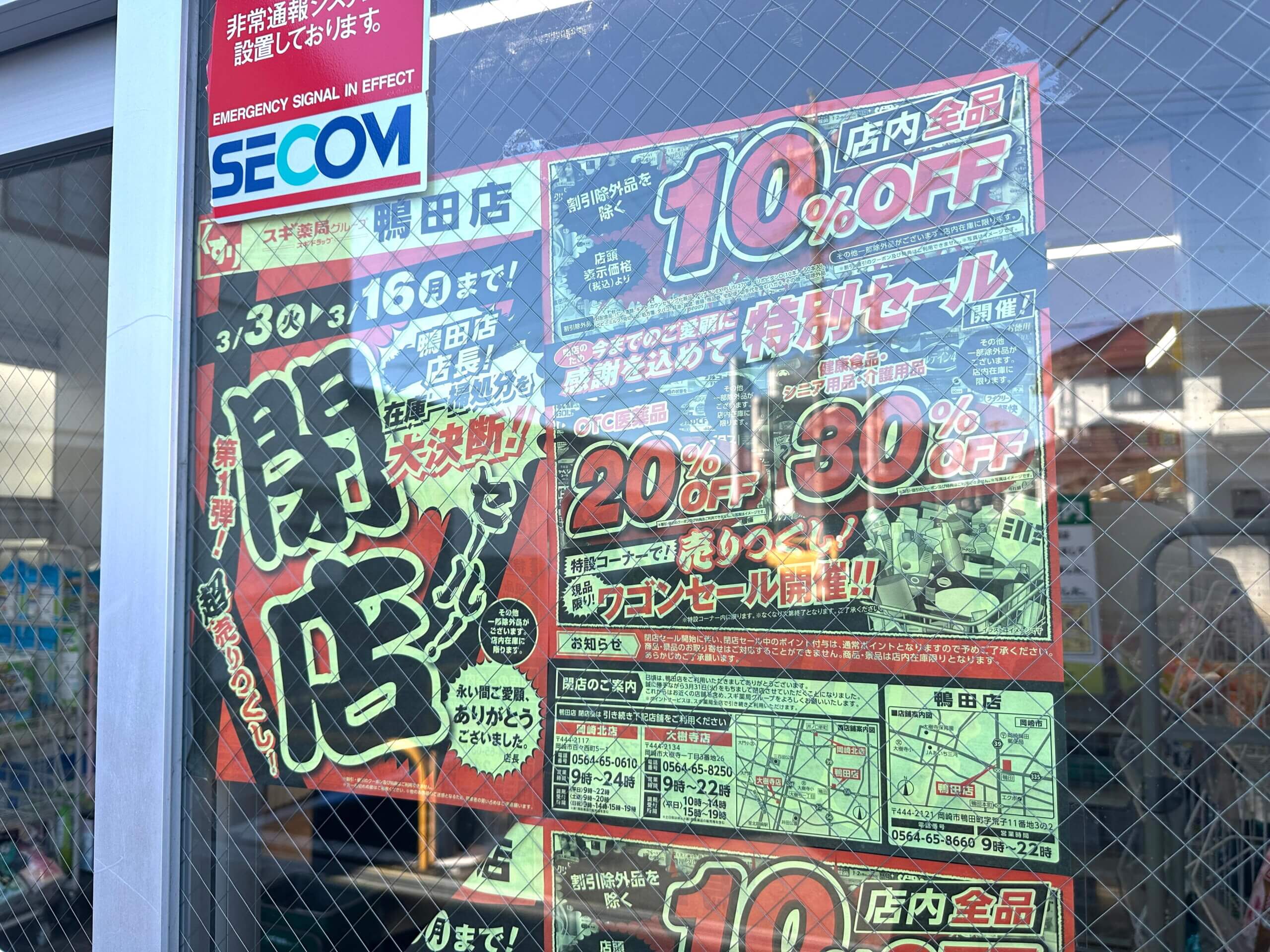 スギ薬局鴨田店が閉店予定、現在は在庫一掃処分の閉店セールを実施中!