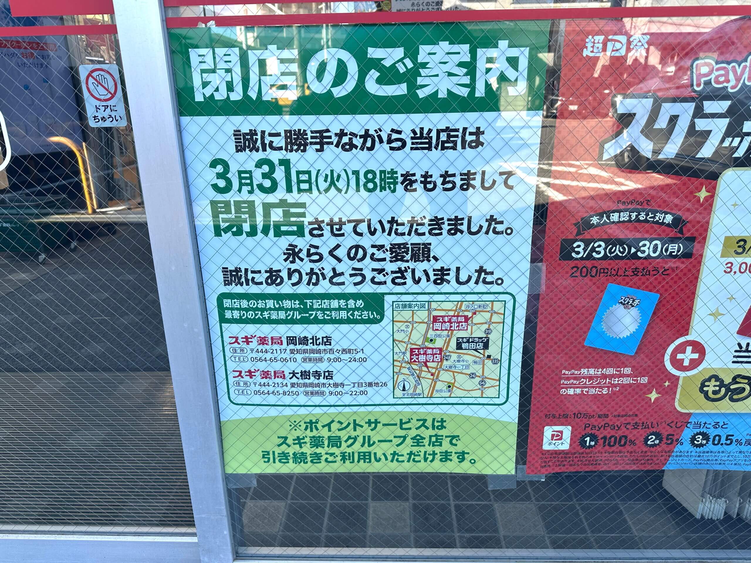 2026年3月31日(火)岡崎市鴨田町にある「スギ薬局 鴨田店」が閉店予定です。